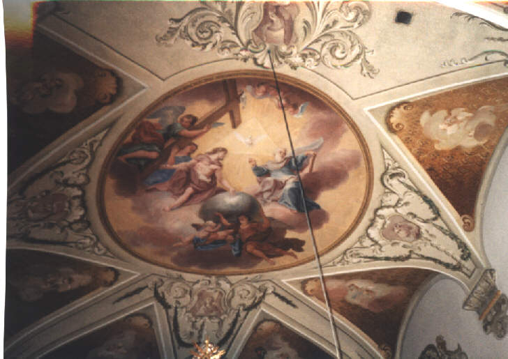 Das Altargemälde am Hochaltar und die Deckenfresken im Chor und